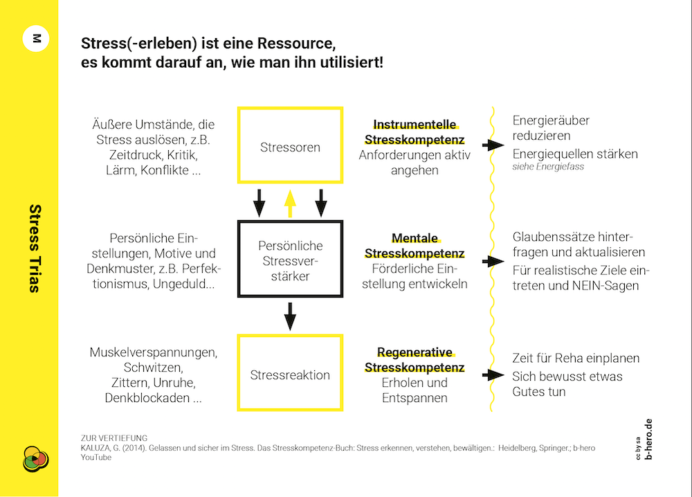 Versteht man Resilienz als die Fähigkeit schwierige Situationen zu meistern und auch unter hoher Belastung (Stress) passende Lösungen zu finden – an Krisen zu wachsen statt zu zerbrechen, so scheint dies auf alle Fälle ein Schlüssel für eine gesunde Kultur. Denn aktuelle KI Entwicklungen erfordern die eigene Rolle in Prozessen neu definieren, den eigenen Expertinnen- und Expertenstatus anzupassen und vor allem wird es immer wichtiger mit Rückschlägen professionell umzugehen, aus diesen zu lernen. Denn gerade KI macht im im Jahr 2026 viele Fehler und der Umgang mit diesen Fehlern und den KI Anwendungen muss geübt werden. Dies gelingt nur, wenn man auf der Ebene der persönlichen Stressverstärker etwas verändert und die eigenen Glaubenssätze anpasst. Nachfolgend als kleiner Reminder die Stress Trias nach Kaluza aus unserem b-hero Kartenset Resilienz (https://multedu.de/produkt-kategorie/kartenset/b-hero/).